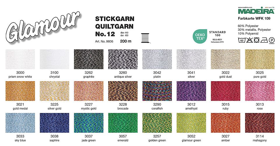 Madeira Glamur Nr. 12 ist ideal für voluminöse und plastische Glitzer-Stickereien