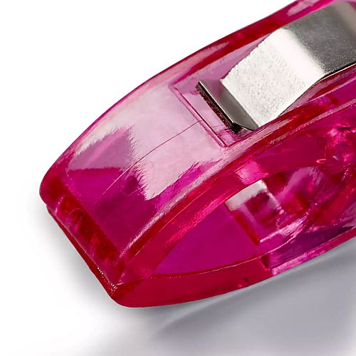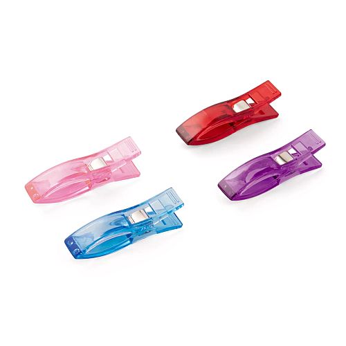 Eine gelungene Alternative zum Abstecken mit üblichen Stecknadeln bieten die Stoff Clips aus der Serie „Prym Love“. Die Stoffklammern sind besonders für Stoffe geeignet, auf denen Nadelstiche dauerhaft zu sehen wären wie z. B. bei Wachstuch oder Leder. Durch die Stoffclips wird das Material einfach und schnell fixiert, aber nicht beschädigt. Sie bieten auch festen Halt beim Heften mehrerer Stofflagen und sind ideale Helfer bei der Fixierung von Quilt-Einfassungen. Die Stoff Clips aus hochwertigem Kunststoff gibt es in zwei Varianten: als Karte mit 12 Stoff Clips in 2,6 cm oder als Karte mit 14 Stoff Clips á 5,5 cm. Beide Varianten bieten mit Blau, Rosa, Lila und Rot eine angenehme Farbenvielfalt – so macht das Abstecken von Stoffen gleich noch mehr Spaß.